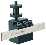 Inkl. zwei Stahlhalter-Elemente. Für schnellen Stahlwechsel und problemlose Höhenjustierung. Für Drehstähle 10 x 10 mm.