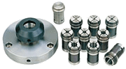Zum Bearbeiten von runden Teilen mit hoher Präzision. 9 gehärtete Spannzangen (je 1 Stück 2 - 3 - 4 - 5 - 6 - 8 - 10 - 12 und 14 mm). Für eine Rundlaufgenauigkeit von 0,02 mm, also genauer als Drehfutter. Zusätzlich 1 ungehärtete Spannzange zum Selbstaufbohren. Die dazu gehörende Spannzangeneinrichtung wird an Stelle des Drehfutters montiert. Im Holzkasten.