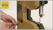 Eine übersichtliche Tabelle nennt den Regelbereich für praktisch alle Werkstück-Materialien. Die für feine Arbeiten ideale Bandstärke (5 x 0,4 mm) ermöglicht Kurvenschnitte mit engen Radien.