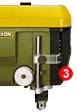 Leistungsstarker, langlebiger Gleichstrommotor. Spindelantrieb über 3-fach-Riemenscheibe mit dem Vorteil des fast 6-fachen Drehmomentes im unteren Drehzahlbereich. Praktische Bohrtiefenanzeige mit einstellbarem Anschlag. Präzisionsgelagerte Bohrspindel. Spindelkopf mit 1/2"-Gewinde für das dazugehörende Zahnkranzbohrfutter (Industriequalität). Spindel mit zusätzlicher Aufnahme für Stahlspannzangen NO 28 200. Ideal auch zum Koordinatenbohren mit dem Kreuztisch KT 150.