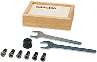 3-fach geschlitzt und gehärtet. Je 1 Stück 2,35 - 3 - 3,2 - 4 - 5 und 6 mm. Dazu Überwurfmutter mit Sechskant (SW 17). Sauber verpackt im Holzkasten mit Schiebedeckel.