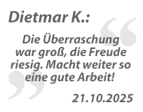 Hier präsentieren wir Ihnen eine Auswahl aktueller Kundenbriefe und E-Mails. Für den vollen Text klicken Sie einfach auf das entsprechende Zitat.