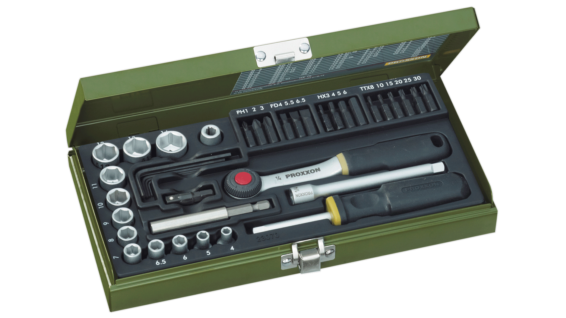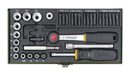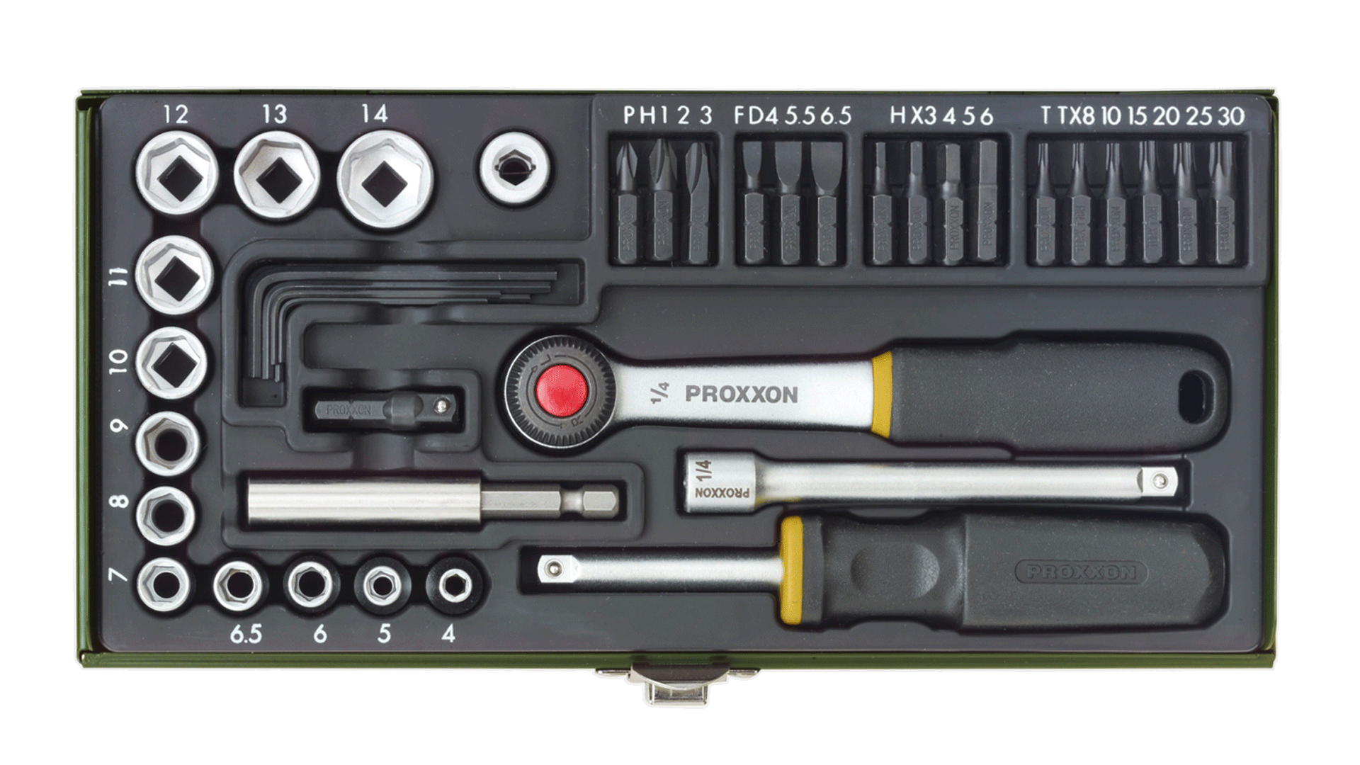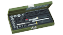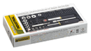 Sturdy, welded steel box, powder coated for durability. With distortion-free, indestructible trays of injected POLYPROPYLENE. Oil and acid resistant and easy to clean. With easy-to-read and durable marking of all socket sizes!