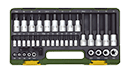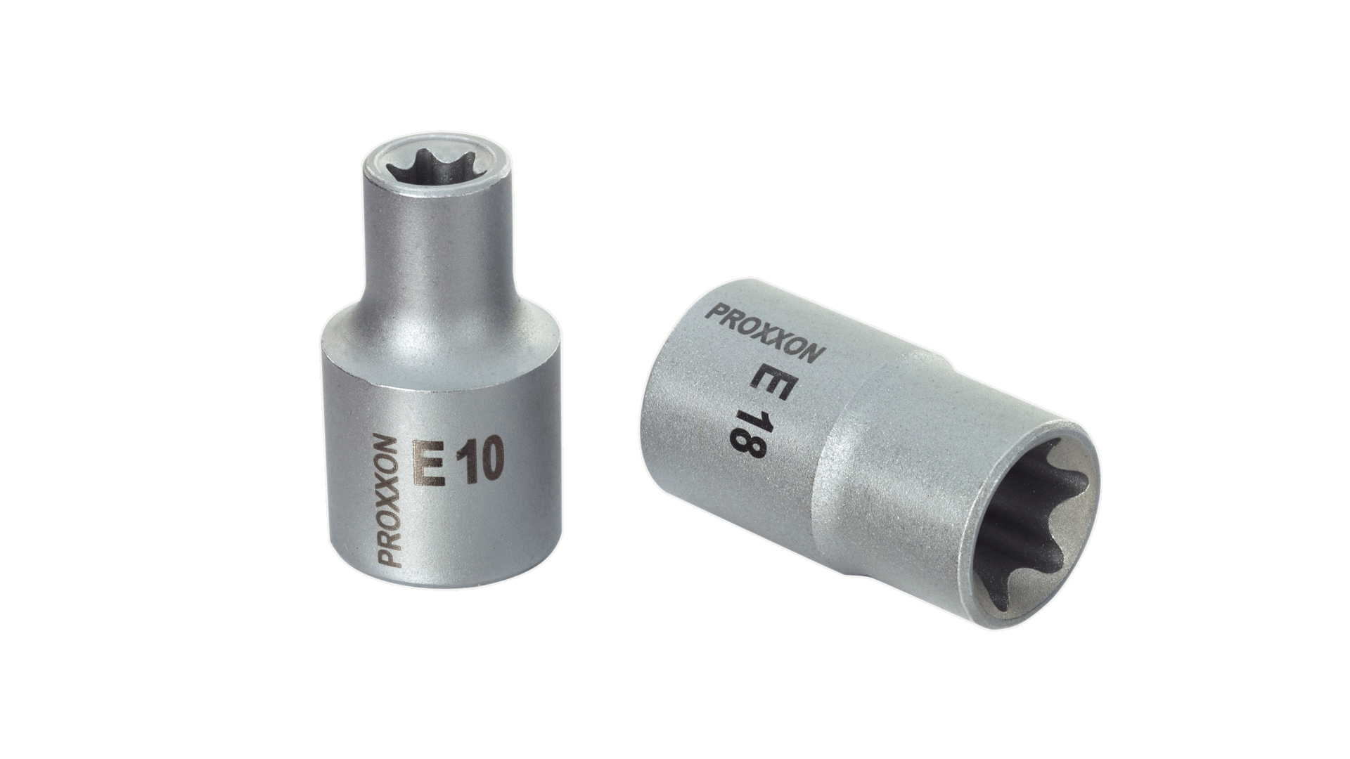 Screwdriver bits for Allen screws sizes 2 - 6mm and screwdriver bits TX8 - TX40 (with frontal hole) as well as external TX E4 to E10.