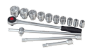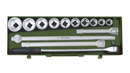 14-piece socket set with 3/4'' square drive (19mm). For lorries, tractors and other machinery.