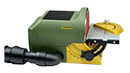 Powerful drive and vibration-free running thanks to balanced DC motor. Variable sanding speeds from 250 - 800m/min. Housing of glass-fibre reinforced POLYAMIDE. Aluminium table tilting downwards through 50°, 10° upwards, with angle stop. Planeturned sanding disc of die-cast aluminium covered with silicone film. This allows for effortless removal of sanding discs after use.