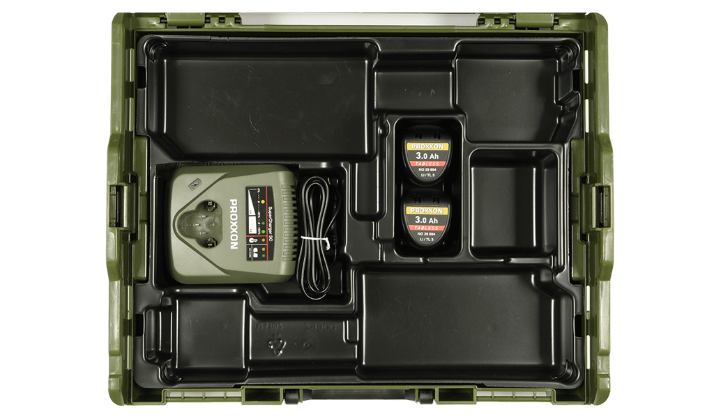 In proven L-BOXX-system. With thermoformed insert for two cordless tools. For a customised selection of two cordless tools for applications such as stone and tile treatment, metal construction, for the automotive sector, car body shops, welding, interior work or maintenance. Plenty of space for accessories.