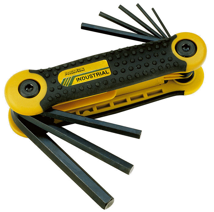 1 de chaque en 1,5 - 2 - 2,5 - 3 - 4 - 5 - 6 et 8 mm. En acier chrome-vanadium, affiné galvaniquement. L'emboîtement en matière douce est agréable à la main et peut aussi servir comme levier.