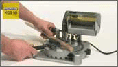 By using the fence and counter-rotating the table 2x 45°, one can get the opposite angles for two equally long framing pieces by simply reversing them. Powerful, very quiet DC motor. Power transfer via belt drive. Carbide tipped saw blade 80 x 1.6 x 10mm (3 1/8" x 1/16" x 3/8"), 36 teeth.