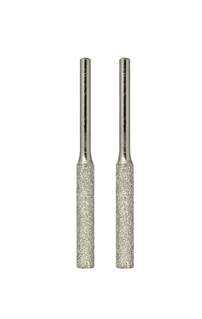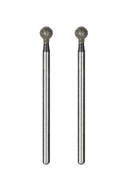 With consistently even diamond dust coating. Bodies and shafts made from stainless steel. Used for grinding, engraving and chiselling steel (even chrome-cobalt alloy), glass, ceramics, porcelain and plastics. Tip diameter 4.4 mm. Shaft 2.35 mm. 2 pieces.